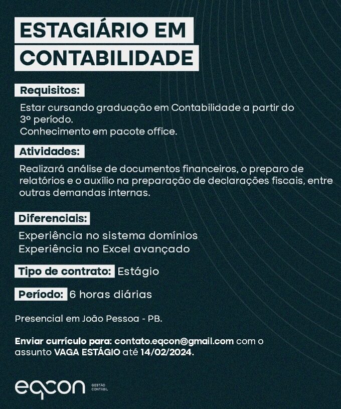Estágio Setor ContábilPresencial João Pessoa – 6h/dia30/11/2025